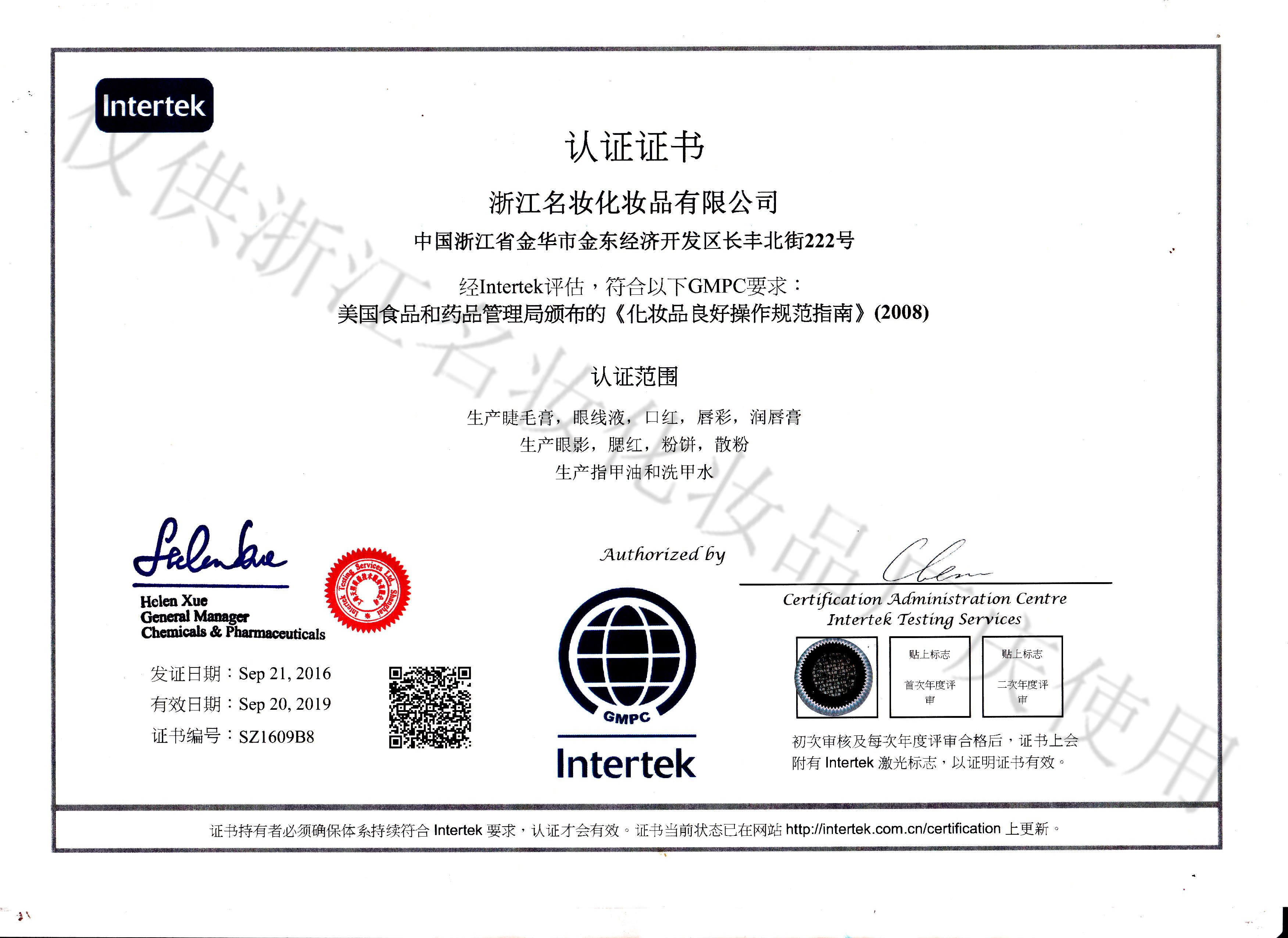 • 浙江名妝于2017年11月順利通